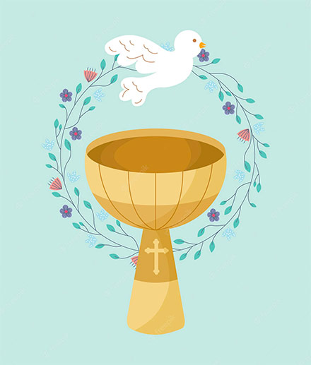 • Es el Espíritu Santo el que hace el milagro en la eucaristía mediante la conversión del pan en el Cuerpo de Cristo, y el vino en la Sangre de Cristo, para que sean nuestro alimento espiritual y fortalecernos en el camino y entrar en una comunión con Él íntima y profunda en el alma.