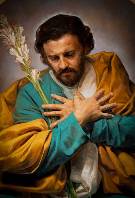 Martirologio Romano: Solemnidad de san José, esposo de la bienaventurada Virgen María, varón justo, nacido de la estirpe de David, que hizo las veces de padre al Hijo de Dios, Cristo Jesús, el cual quiso ser llamado hijo de José y le estuvo sujeto como un hijo a su padre. La Iglesia lo venera con especial honor como patrón, a quien el Señor constituyó sobre su familia.
