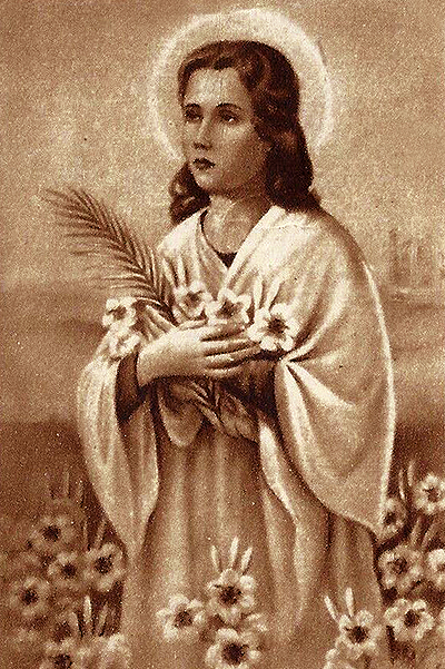Martirologio Romano: Santa María Goretti, virgen y mártir, que en el transcurso de una infancia difícil, ayudando a su madre en las labores de la casa, se distinguió ya por su piedad. Cuando no contaba más que doce años, murió en defensa de su castidad, a causa de las puñaladas que le asestó un joven que intentaba violarla cuando se hallaba sola en su casa, cercana a la localidad de Nettuno, en la región del Lacio, en Italia († 1902).