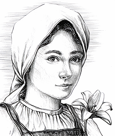 Una tarde, María estaba sentada en lo alto de la escalera de la casa, remendando una camisa. Aunque aún no cumplía los doce años, era ya una mujercita.