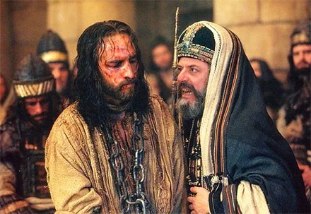 Así cuando el sanedrín lo procesa y cuando un soldado le da una bofetada, no le presenta la otra mejilla, sino que le dice: «Si he hablado mal, muéstrame en qué, y si bien, ¿por qué me abofeteas?» (Jn. 18,22.23).