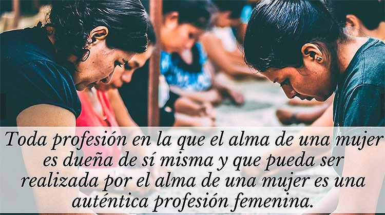 “El alma de la mujer debe ser amplia y abierta a todo lo humano; debe ser sosegada, de modo que ninguna débil llama pueda ser apagada por la tempestad; debe ser cálida, a fin de que la tiernas semillas no se congelen; (…) vacía de sí misma, para que la vida ajena tenga en ella espacio; finalmente, señora de sí misma y de su propio cuerpo, a fin de que toda su personalidad se encuentre en actitud de servicio a toda llamada”. (Los principios fundamentales de la educación de la mujer)
