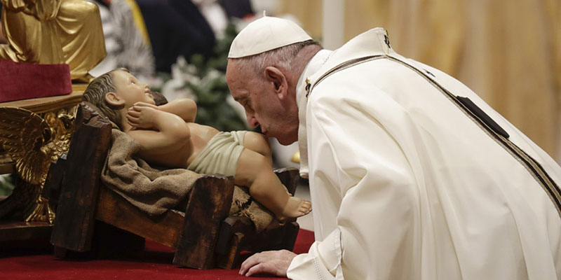 Jesús – dice Francisco – es el Hijo de Dios que nos salva haciéndose hombre, como nosotros, despojándose de su gloria y humillándose. Vemos este misterio concretamente en el punto central del pesebre, es decir, en el Niño acostado en un pesebre.