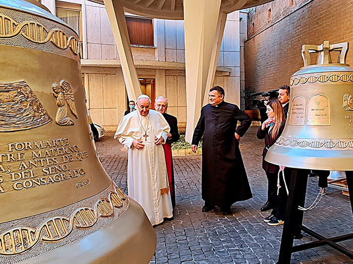 El papa Francisco ha bendecido hoy unas campanas que tocarán simbólicamente para que resuene el clamor de las “voces de los no nacidos” en Ecuador y Ucrania.
