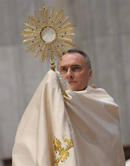 En su homilía pronunciada en el Altar de la Cátedra de la Basílica de San Pedro, durante la celebración de la solemnidad del Corpus Christi presidida esta mañana, el cardenal recordó que Jesús se llamó a sí mismo «pan vivo bajado del cielo», alimento para la vida eterna, mostrando en su abajarse sobre la humanidad, «todo el amor del Padre por el hombre, un abajamiento que le llevará a la muerte y a la muerte de cruz».
