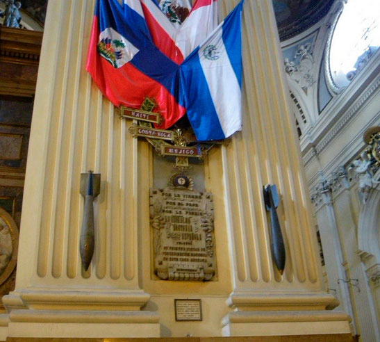 También se pueden ver dos de las cuatro bombas, totalmente intactas, muy cerca de la Santa Capilla, junto con las banderas de hispanoamericanas de Méjico, Haití, Costa Rica, Perú y El Salvador, por ser la Virgen del Pilar, patrona de la Hispanidad.