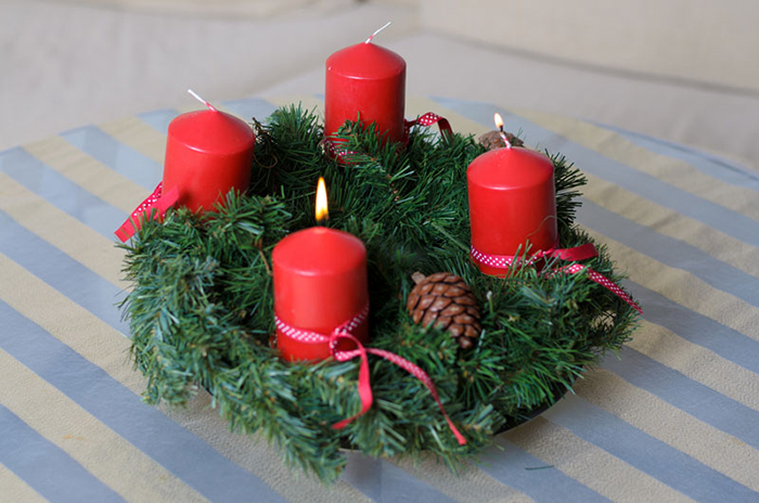 La colocación de cuatro cirios sobre una corona de ramos verdes, que es costumbre sobre todo en los países germánicos y en América del Norte, se ha convertido en un símbolo del Adviento en los hogares cristianos.