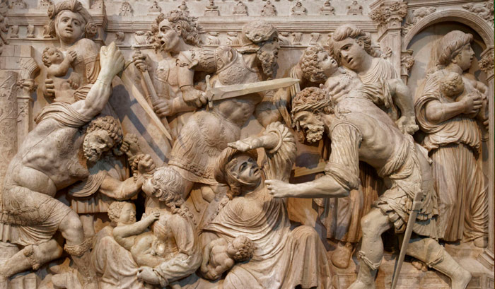 Herodes, según el relato evangélico, conoció por los Reyes Magos que había nacido el Mesías. Creyó que Jesús le iba a usurpar el poder y ordenó asesinar a todos los bebés y niños menores de 2 años.