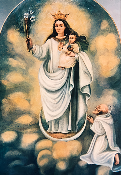En el Perú, como un homenaje a la cuna de nacimiento de sor Antonia Lucía del Espíritu Santo, se decidió colocar este lienzo para acompañar al Señor de los Milagros en la parte posterior de las andas sagradas el 20 de octubre de 1747. Ambas salen en procesión multitudinaria en Lima en el mes de octubre. Muestra a sus pies, en posición orante al obispo favorecido de su mano, Sancho de Andrade y Figueroa, y sobre el terreno se observa una pequeña iglesia, que algunos identifican como la parroquia de Guápulo o el santuario de Las Nazarenas.