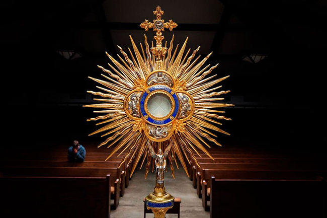 Quiero que Mis sacerdotes activamente alienten almas para buscarme en el Sacramento de Mi amor y pasen tiempo cerca de Mi Corazón Eucarístico. Ninguna cosa traerá esto más efectivamente que el ejemplo de Mis sacerdotes, Hay sacerdotes que van dentro de Mi iglesia solamente cuando ellos tienen una función para ejercer ahí. Los corazones de ellos ya han crecido fríos y Yo estoy dolido por su indiferencia hacia Mi presencia permanente, frecuentemente muy cerca de ellos. Deseo que los sacerdotes empiecen a frecuentar sus iglesias, no solamente en las horas del servicio divino, sino en otros tiempos durante el día e incluso durante las horas de la noche. Así empezaran a permitirme a restaurarlos a una santidad brillante. Que empiecen uno o dos, aquí y allá. El gran fuego empezará con estas pocas chispas y se dispersará hasta que la Iglesia entera sea incendiada con la Santidad Eucarística de Mis amigos, Mis sacerdotes.