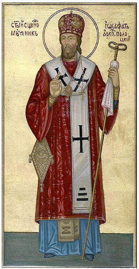 Martirologio Romano: Memoria de la pasión de san Josafat (Juan) Kuncewicz, obispo de Polock y mártir, que animó con constante celo a su grey a la unidad católica, cultivó con amorosa devoción el rito eslavo-bizantino y, en Vitebsk en Bielorusia, en aquel tiempo bajo la jurisdicción polaca, cruelmente asaltado por una multitud de personas adversaria a él, murió por la unidad de la Iglesia y por la verdad católica († 1623).