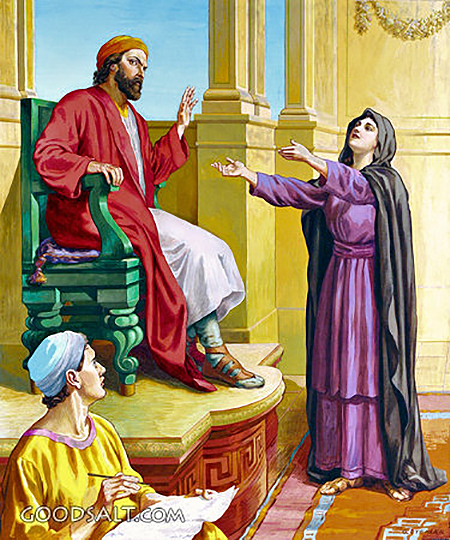 «En cierta ciudad había un juez que ni temía a Dios ni le importaban los hombres. Vivía en aquella misma ciudad una viuda que acudía a él con frecuencia para decirle: ‘Hazme justicia contra mi adversario’.