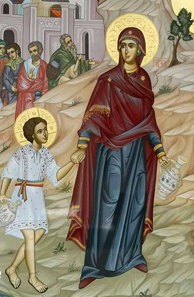 El Evangelio de Mateo relata que la mujer no es del territorio de Israel. El Señor no la escucha, pero ante su insistencia los discípulos le piden que la atienda para que pare, pero Jesús explica que “su misión está destinada a los hijos de Israel”. Pero ella no desiste y se postra ante Él, suplicándole. Entonces Jesús le dice: “Mujer, qué grande es tu fe: que se cumpla lo que deseas”.