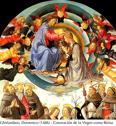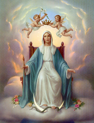 María ha sido elevada sobre la gloria de todos los santos y coronada de estrellas por su divino Hijo. Está sentada junto a Él y es Reina y Señora del universo.
