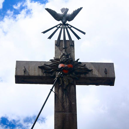 En realidad son dos imágenes las que salen en procesión cada mes de octubre: una, el lienzo con la copia del Crucificado del muro, y otra, la de la Virgen de la Nube, devoción ecuatoriana que la madre Antonia trajo al Perú.