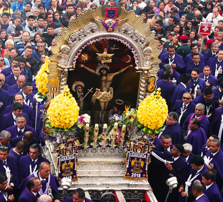 Su procesión es una tradición peruana, considerada como la manifestación religiosa católica periódica más numerosa del mundo