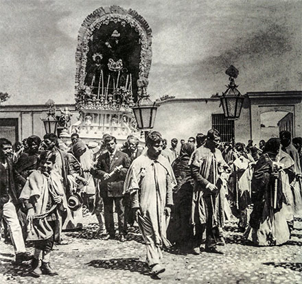 Precisamente, los angolas fueron llevados a la zona de Pachacamilla en 1651 y al estar instalados, se organizaron para construir sus cabañas o callejones divididos en habitaciones, en donde rendían culto a distintas imágenes o santos. Estos actos les recordaban su libertad y cantaban siempre en su lengua nativa. Ellos también se preocupaban por los enfermos, y que tuvieran un entierro decente.