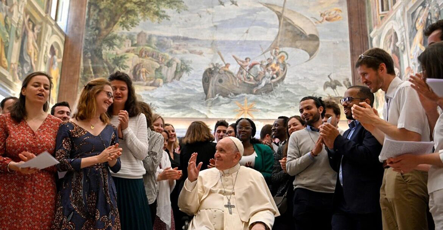 La otra propuesta que el Santo Padre mencionó se refiere al cuidado de la casa común. “También en este caso me alegró comprobar que, mientras las generaciones anteriores hablaban mucho y concluían poco, ustedes, en cambio, son capaces de tomar iniciativas concretas. Por eso digo que este momento puede ser el adecuado. Si no consiguen darle la vuelta a esta tendencia autodestructiva, será difícil que otros lo hagan en el futuro”. No se dejen seducir por las sirenas que proponen una vida de lujo reservada a una pequeña porción del mundo, ojalá que tengáis “ojos grandes” para ver al resto de la humanidad en su conjunto, que no se reduce a la pequeña Europa; que aspiren a una vida digna y sobria, sin lujos ni derroches, para que todos puedan habitar el mundo con dignidad. Sobre este tema el Papa también les sugirió leer la Encíclica Laudato si’, donde creyentes y no creyentes encuentran sólidas motivaciones para comprometerse en favor de una ecología integral.