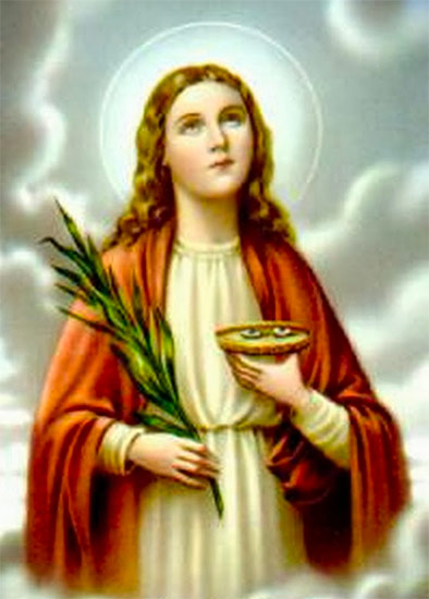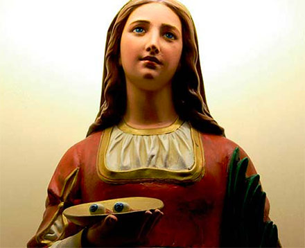 Martirologio Romano: Memoria de santa Lucía, virgen y mártir, la cual, mientras vivió, conservó encendida la lámpara esperando al Esposo, y llevada al martirio en Siracusa, ciudad de Sicilia, mereció entrar con Él a las bodas y poseer la luz indefectible († c. 304).