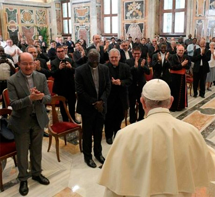 Esta mañana, Francisco ha recibido en el Vaticano a los participantes en el Capítulo General de los Misioneros Hijos del Corazón Inmaculado de María, comúnmente conocidos como claretianos, un grupo de un centenar de personas de todo el mundo, que representan a los casi tres mil miembros del Instituto. Acompañando a los miembros del capítulo -que reeligió al padre Mathew Vattamattam como superior general- estuvo el cardenal Aquilino Bocos Merino.