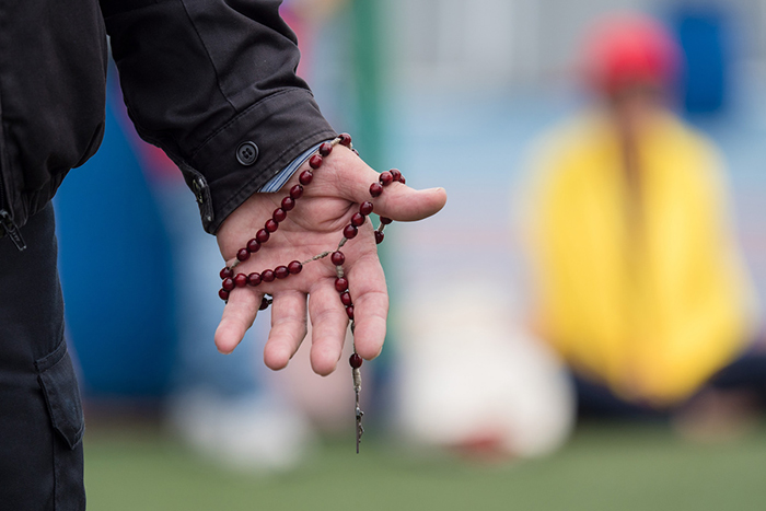 La tercera palabra que destacó el Papa es “consuelo”. Y explicó que “indica una fuerza que no viene de nosotros, sino de los que están con nosotros. Jesús, el Dios-con-nosotros, nos da esta fuerza, su Corazón nos da valor en la adversidad”.