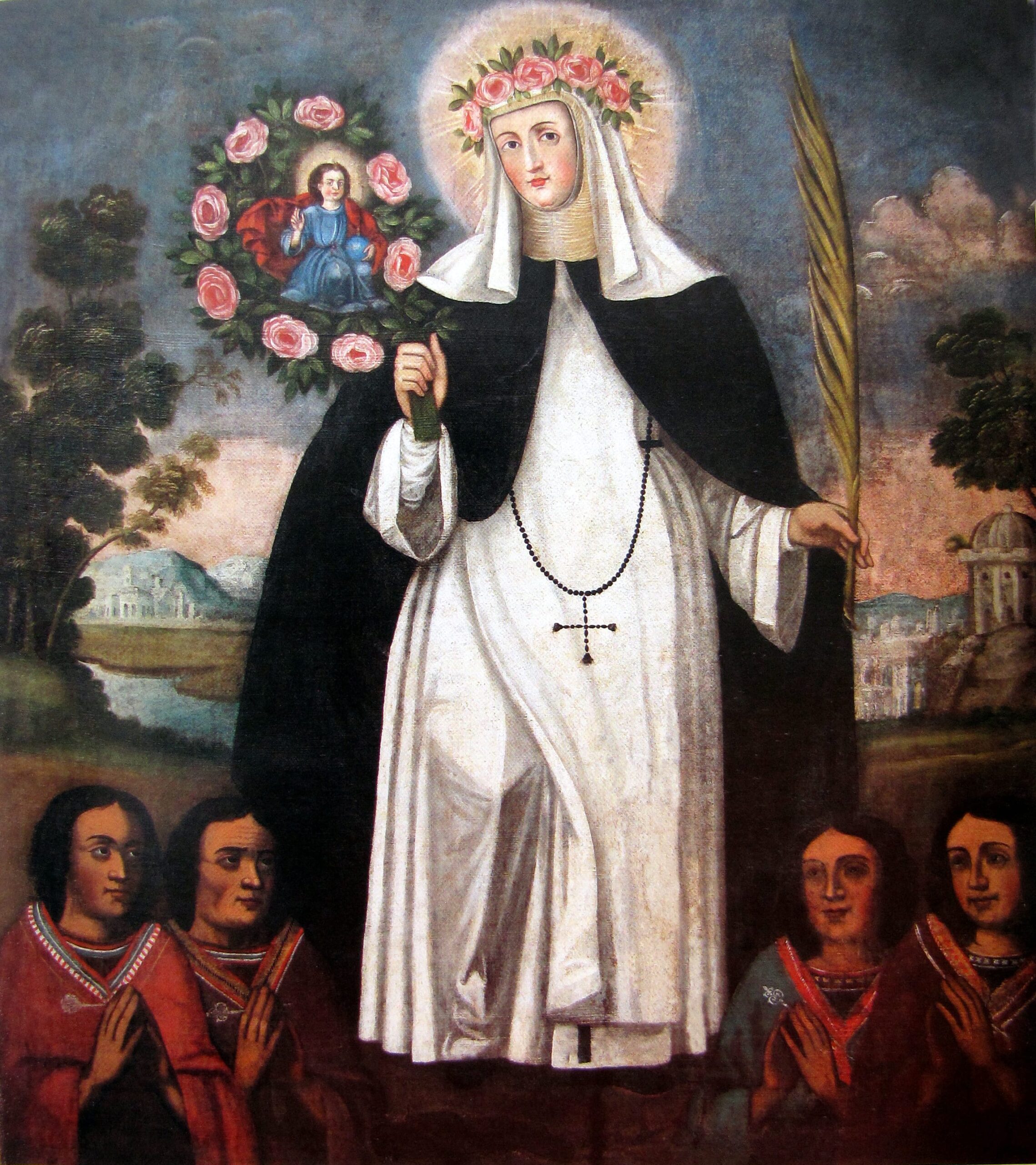 Martirologio Romano: Santa Rosa, virgen, que, insigne desde muy niña por su austera sobriedad de vida, en Lima, en el Perú, vistió el hábito de las Hermanas de la Tercera Orden de Santo Domingo. Entregada a la penitencia y a la oración, y ardiente de celo por la salvación de los pecadores y de la población indígena, aspiraba a dar la vida por ellos, sometiéndose de buena gana a toda clase de sufrimientos para ganarlos para Cristo. Su muerte tuvo lugar el día veinticuatro de agosto. († 1617).