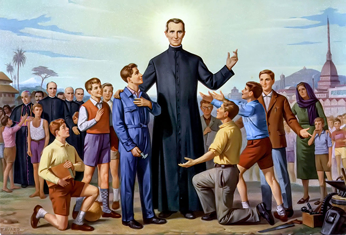 A los 17 años, después de una crisis religiosa, decide consagrarse a Dios y en 1851 recibe la ordenación sacerdotal. Es el cura de los barrios pobres, el apóstol de los pequeños limpiachimeneas, de los chicos de la calle, de los encarcelados, de los jóvenes obreros.