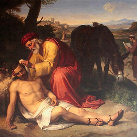 ¨PERO UN SAMARITANO QUE IBA DE VIAJE, AL VERLO SE COMPADECIÓ DE EL¨. Ahora bien lo sabemos, era bien conocido por la gente de la época de JESUS que escuchó esta historia, un samaritano, eran mestizos, eran forasteros, eran judíos que se habían mezclado con los invasores asirios, mucho tiempo atrás, se les veía como personas comprometidas que no eran fieles en su religión, moralmente corruptos. Los judíos piadosos, rodeaban Samaría en su camino, los samaritanos eran simplemente malas persona. Piense en todos nosotros los pecadores, tenemos grupos que no nos agradan. Bueno, piensen que este es el grupo del que estamos hablando. Y el Samaritano que viajaba solo, se le acercó y se compadeció de él al verlo. Ahora BIEN ¿Quién es el Samaritano. Recuerden aquí nuestra clave interpretativa¿ estamos hablando de la caída de la humanidad, y ahora estamos hablando de JESÚS que en su propia época de Nazaret, JESUS a esta especie de personaje cuestionable para la opinión de muchos. Pero es EL que demuestra compasión y misericordia. Que bueno que es el Papa Francisco, por supuesto, enfatizando ¨Misericordia¨. La Misericordia de Dios, la Misericordia de CRISTO. Esa es la compasión del HIJO DE DIOS,  esa es la Misericordia que muestra a la humanidad caída, cuando languidecemos al costado del camino en nuestro pecado. Escuchemos: ¨SE LE ACERCÓ, UNGIÓ SUS HERIDAS CON ACEITE Y VINO Y SE LAS VENDO. Una de las principales descripciones de JESÚS es ¨SOTER¨, que significa SANADOR. Es la traducción al latín como SALVADOR. La palabra en inglés ¨SALVE¨ viene de aquí ¨SALVATOR¨. Significa bálsamo curativo. JESÚS es un sanador, y noten que lo hace con aceite y vino, como un medio para curar. ¿Es casualidad? No lo creo, representa aquí la vida sacramental de la Iglesia. Aceite que es usado en el Bautizo, aceite que es usado en la Confirmación, aceite que es usado en el Orden Sagrado, aceite que es usado en la Unción de los Enfermos. Y vino, que por supuesto representa la EUCARISTÍA. ¿Cómo nos cura CRISTO? Somos miembros de la Iglesia, de la raza humana. Estamos languideciendo,  LA RELIGIÓN CORRUPTA NO PUEDE SALVARNOS. PERO CRISTO PUEDE SALVARNOS Y LLEVARNOS PRECISAMENTE A LA RELIGIÓN AUTÉNTICA QUE SE ENCUENTRA EN LA VIDA SACRAMENTAL DE LA IGLESIA. Saben que es hermoso. La IGLESIA ESTÁ LLENA DE GENTE COMPROMETIDA. SI COMO YO Y COMO UDS. Quiero decir, enfrentemoslo.