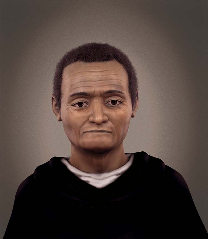Así lucia Martin de Porres Velázquez a sus 60 años. Este es el rostro que hoy la ciencia nos devela, gracias al esforzado aporte de dos jóvenes científicos brasileños, Cícero Moraes, diseñador en 3D y Paul Miamoto, odontólogo forense, miembros del equipo Brasileño de Antropología y Odontología Legal (EBRAFOL).