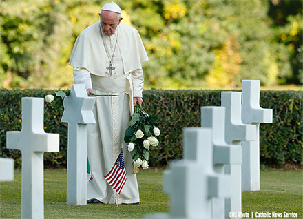 “Deténganse hermanos, hermanas. Deténganse fabricantes de armas», «estas tumbas hablan, gritan por sí mismas, gritan por la paz”