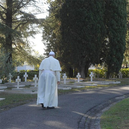 Encaramado en lo alto de la colina de Monte Mario, en la orilla derecha del Tíber, el cementerio militar francés domina la Ciudad Eterna desde hace casi 75 años. Y este año ha sido el lugar elegido por el Papa Francisco para la celebración de la misa con motivo de la conmemoración de todos los fieles difuntos. Se trata de un lugar relativamente desconocido para los romanos y que es muy simbólico para Francia. Se encuentra en la parte alta de la capital italiana, en Via dei Casali di Santo Spirito, donde ya se han llevado a cabo en el pasado otras conmemoraciones.