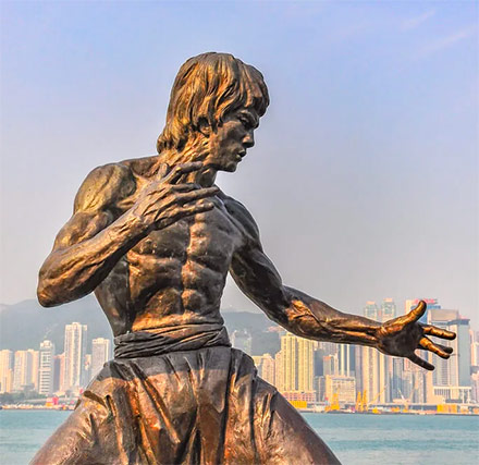 El kung-fu, por ejemplo. Vamos a ver un poco qué es esto del kung-fu. El kung-fu no es simplemente un invento de Bruce Lee o David Carradine para hacer películas exitosas. ¡No, no! Es mucho más… El kung-fu resume de algún modo el espíritu milenario chino de vivir de acuerdo con la naturaleza, el yin y el yang, y todo eso. Es, ni más ni menos, que una técnica religiosa influida por el taoísmo y por el bonzo Bodhidharma, introductor del budismo en China. ¿Qué te parece? De hecho, la palabra Confucio viene precisamente de la raíz kung-fu.