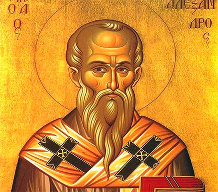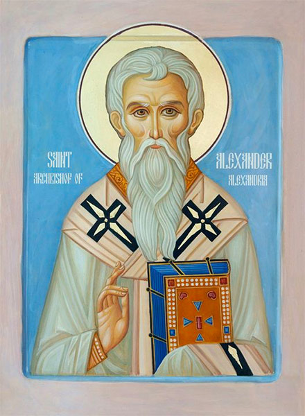 Martirologio Romano: Conmemoración de san Alejandro, obispo, anciano célebre por el celo de su fe, que fue elegido para la sede alejandrina como sucesor de san Pedro y rechazó la nefasta herejía de su presbítero Arrio, que se había apartado de la comunión de la Iglesia. Junto con trescientos dieciocho Padres participó en el primer Concilio de Nicea, que condenó tal error († 326)