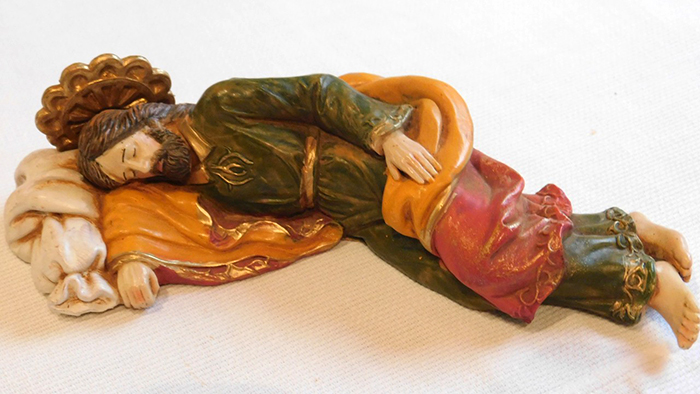 «Yo quisiera también decirles una cosa muy personal. Yo quiero mucho a san José. Porque es un hombre fuerte y de silencio. Y tengo en mi escritorio tengo una imagen de san José durmiendo. Y durmiendo cuida a la Iglesia. Sí, puede hacerlo. Nosotros no. Y cuando tengo un problema, una dificultad, yo escribo un papelito y lo pongo debajo de san José para que lo sueñe. Esto significa para que rece por ese problema». (Homilía de S.S. Francisco, 16 de enero de 2015).