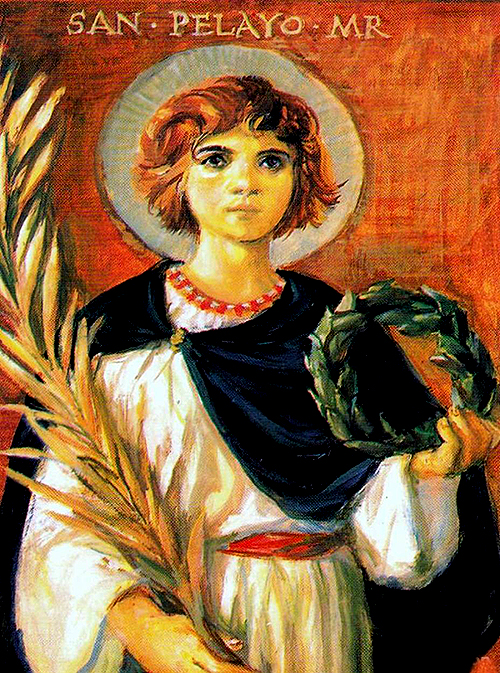 Martirologio Romano: San Pelagio (o Pelayo), mártir, que a los trece años, por querer conservar su fe en Cristo y su castidad ante las costumbres deshonestas de Abd ar-Rahmán III, califa de los musulmanes, consumó en Córdoba, en la región hispánica de Andalucía, su glorioso martirio, al ser despedazado con tenazas († 925).