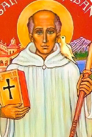 Martirologio Romano: San Columbano, abad, irlandés de nacimiento, que por Cristo se hizo peregrino para evangelizar a las gentes de las Galias. Fundó, entre otros muchos, el monasterio de Luxeuil, que él mismo rigió con estricta observancia, y obligado después a exiliarse, atravesó los Alpes y construyó el cenobio de Bobbio, en la Liguria, famoso por su disciplina y estudios, en el cual se durmió en paz, lleno de méritos para con la Iglesia. Su cuerpo recibió sepultura en este día († 615).
