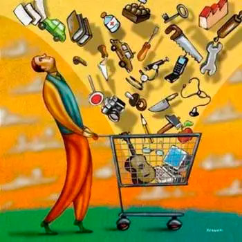 2. El consumismo es otra cosa. Con la denominada sociedad industrial aparece la multiplicación y acumulación de bienes, con frecuencia innecesarios y superfluos, cuando no ordenados con frecuencia a la ostentación y obtención de determinado «status». Entonces la persona resulta esclava de las cosas, dominada por ellas. Nada le resulta suficiente, aparece insaciable y enredada en una conjunción, a veces hasta ridícula, de vanidad y codicia, con un asfixiante trasfondo materialista. En definitiva, el paroxismo del tener cosas ahoga al ser de la persona. Los «shopping centers» y los «free-shops» de los grandes aeropuertos podrían ser como los símbolos del consumismo contemporáneo. A veces hasta aparece un aspecto ridículo como es el ofrecido sobre todo por los denominados «nuevos ricos» a quienes el lenguaje popular graficó llamándolos «piojos resucitados».