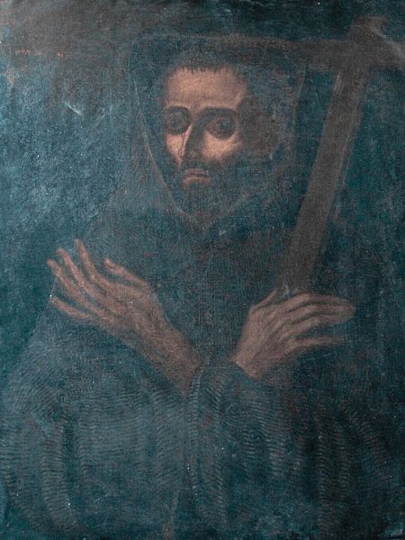 “Retrato postmortem de San Francisco Solano”. óleo realizado por Pedro Reinalte Coelho en 1610, tras el fallecimiento del santo. Es considerado el retrato más fidedigno. Se conserva en el Museo San Francisco y Catacumbas de Lima.