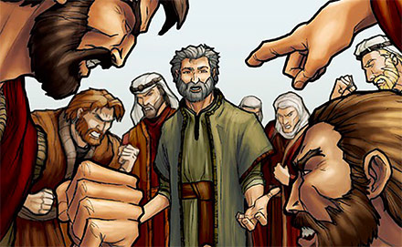 El que esté sin pecado, que le tire la primera piedraLos fariseos afirman que, según la ley religiosa, la mujer debe ser apedreada porque ha pecado. Intentan atrapar a Jesús.