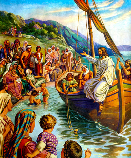 En aquel tiempo, al ver Jesús que la multitud lo rodeaba, les ordenó a sus discípulos que cruzaran el lago hacia la orilla de enfrente.