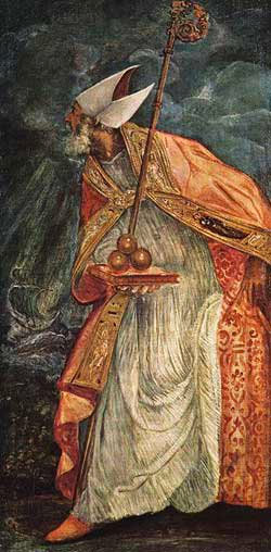 Se narra también que, invocado por algunos marineros durante una furiosa tempestad en el mar, él se les apareció y la tempestad cesó inmediatamente. En efecto, parece que con los marineros tenían cuenta abierta: durante una carestía había obtenido de una nave llena de trigo una buena porción para sus fieles; después, cuando los dueños controlaron el contenido de la nave, encontraron que todo el trigo estaba completo. Tras su muerte se convirtió en el primer santo, no mártir, en gozar de una especial devoción en el Oriente y Occidente. Multitud de relatos milagrosos aparecieron sobre él, desfigurando, a veces, su inminente carácter práctico y sencillo.