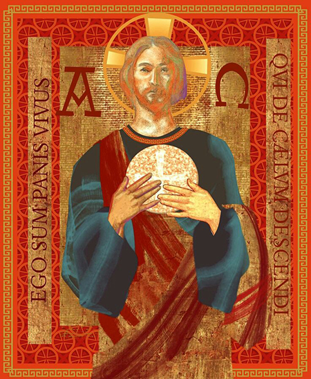 Este es el pan que ha bajado del cielo para que, quien lo coma, no muera. Yo soy el pan vivo que ha bajado del cielo; el que coma de este pan vivirá para siempre, y el pan que yo les voy a dar es mi carne para que el mundo tenga vida».