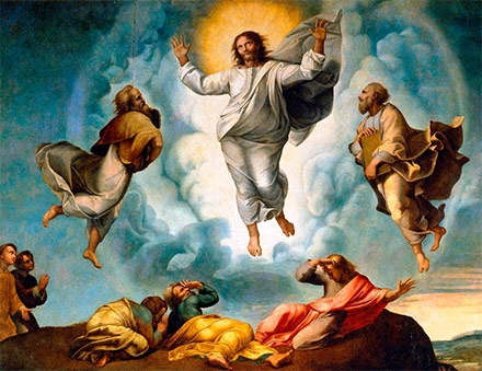 Narra el santo Evangelio (Lc. 9, Mc. 6, Mt. 10) que unas semanas antes de su Pasión y Muerte, subió Jesús a un monte a orar, llevando consigo a sus tres discípulos predilectos, Pedro, Santiago y Juan. Y mientras oraba, su cuerpo se transfiguró. Sus vestidos se volvieron más blancos que la nieve, y su rostro más resplandeciente que el sol. Y se aparecieron Moisés y Elías y hablaban con El acerca de lo que le iba a suceder próximamente en Jerusalén.