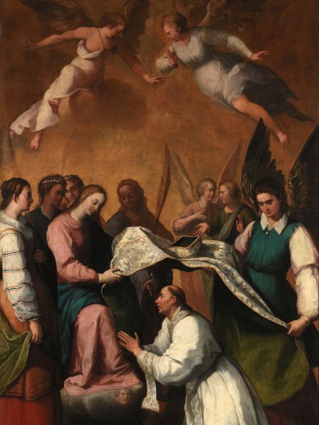La noche del 18 de diciembre del 665 San Ildefonso junto con sus clérigos y algunos otros, fueron a la iglesia, para cantar himnos en honor a la Virgen María. Encontraron la capilla brillando con una luz tan deslumbrante, que sintieron temor. Todos huyeron excepto Ildefonso y sus dos diáconos. Estos entraron y se acercaron al altar. Ante ellos se encontraba la Virgen María, sentada en la silla del obispo, rodeada por una compañía de vírgenes entonando cantos celestiales. María al ir hizo una seña con la cabeza para que se acercara. Habiendo obedecido, ella fijó sus ojos sobre él y dijo: «Tu eres mi capellán y fiel notario. Recibe esta casulla la cual mi Hijo te envía de su tesorería.» Habiendo dicho esto, la Virgen misma lo invistió, dándole las instrucciones de usarla solamente en los días festivos designados en su honor.