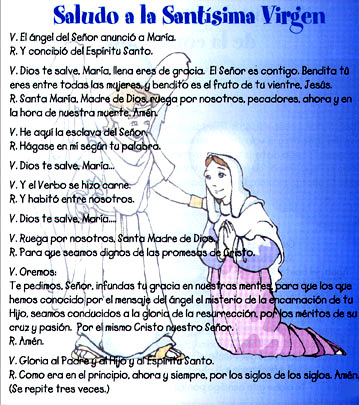 Reza a las 12:00 del día el saludo a la Virgen o Angelus.