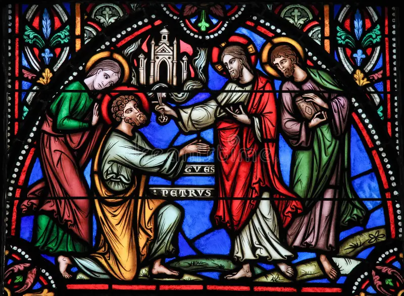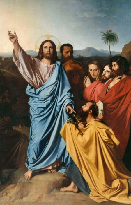 Jesús le dijo entonces: «¡Dichoso tú, Simón, hijo de Juan, porque esto no te lo ha revelado ningún hombre, sino mi Padre, que está en los cielos! Y yo te digo a ti que tú eres Pedro y sobre esta piedra edificaré mi Iglesia. Los poderes del infierno no prevalecerán sobre ella. Yo te daré las llaves del Reino de los cielos; todo lo que ates en la tierra quedará atado en el cielo, y todo lo que desates en la tierra quedará desatado en el cielo». Y les ordenó a sus discípulos que no dijeran a nadie que él era el Mesías.