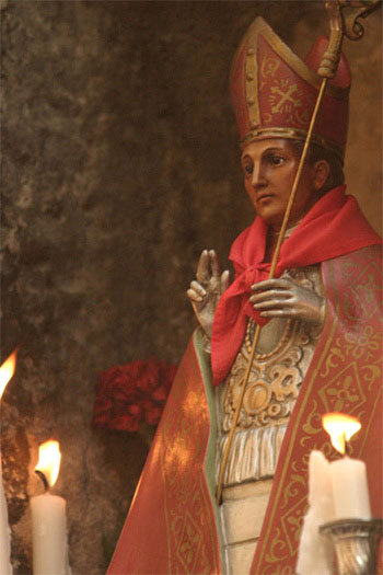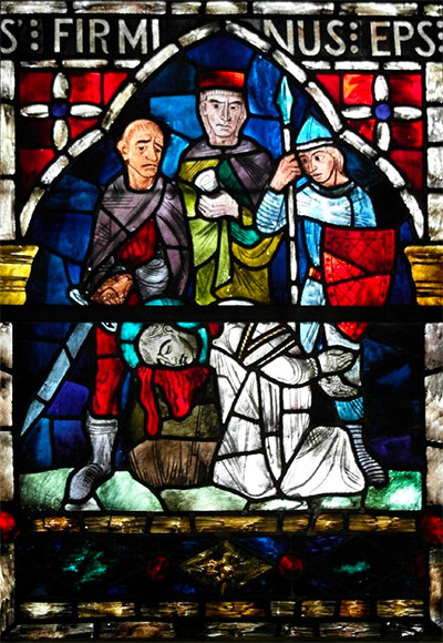 San Fermín, obispo de Pamplona. El obispo de Tolosa San Saturnino le envió a predicar el Evangelio a Pamplona, le consagró por su primer obispo y, vuelto después de algunos años a las Galias, predicó el Evangelio en el norte de Francia, muriendo en Amiéns, s. II.