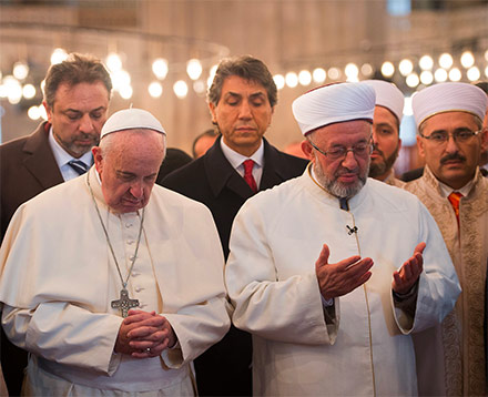 “Las religiones nunca han de ser manipuladas y nunca pueden favorecer conflictos y enfrentamientos…  Ningún sincretismo conciliador, ni una apertura diplomática, que dice sí a todo para evitar problemas, sino dialogar con los demás y orar por todos: estos son nuestros medios para cambiar sus lanzas en podaderas, para hacer surgir amor donde hay odio, y perdón donde hay ofensa, para no cansarse de implorar y seguir los caminos de la paz”.