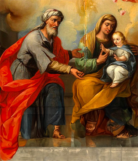 Martirologio Romano: Memoria de san Joaquín y santa Ana, padres de la Inmaculada Virgen María, Madre de Dios, cuyos nombres se conservaron gracias a la tradición de los cristianos.