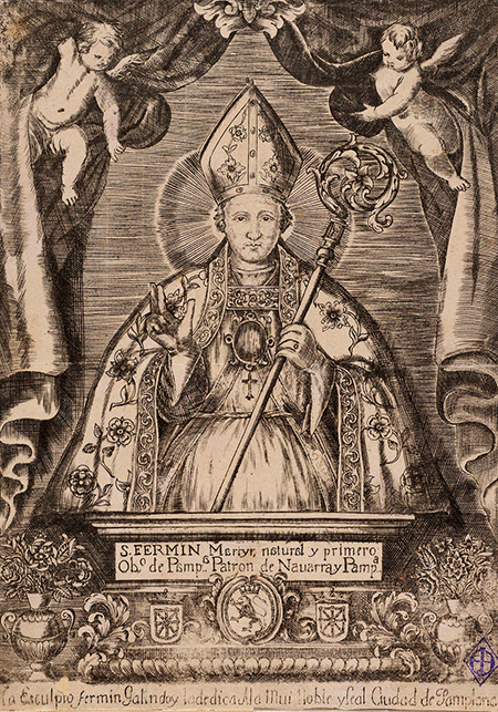 San Fermín, obispo de Pamplona. El obispo de Tolosa San Saturnino le envió a predicar el Evangelio a Pamplona, le consagró por su primer obispo y, vuelto después de algunos años a las Galias, predicó el Evangelio en el norte de Francia, muriendo en Amiéns, s. II.